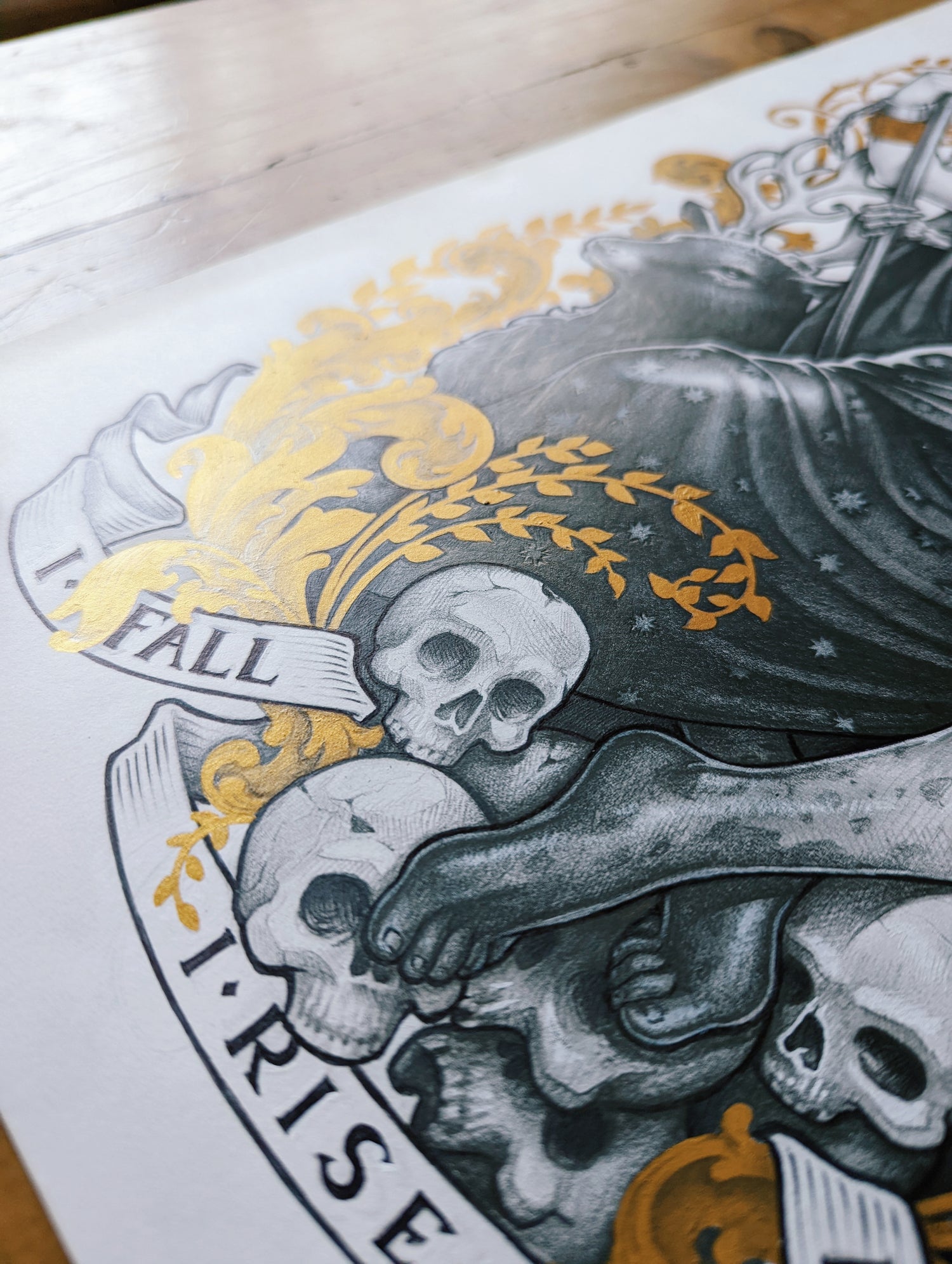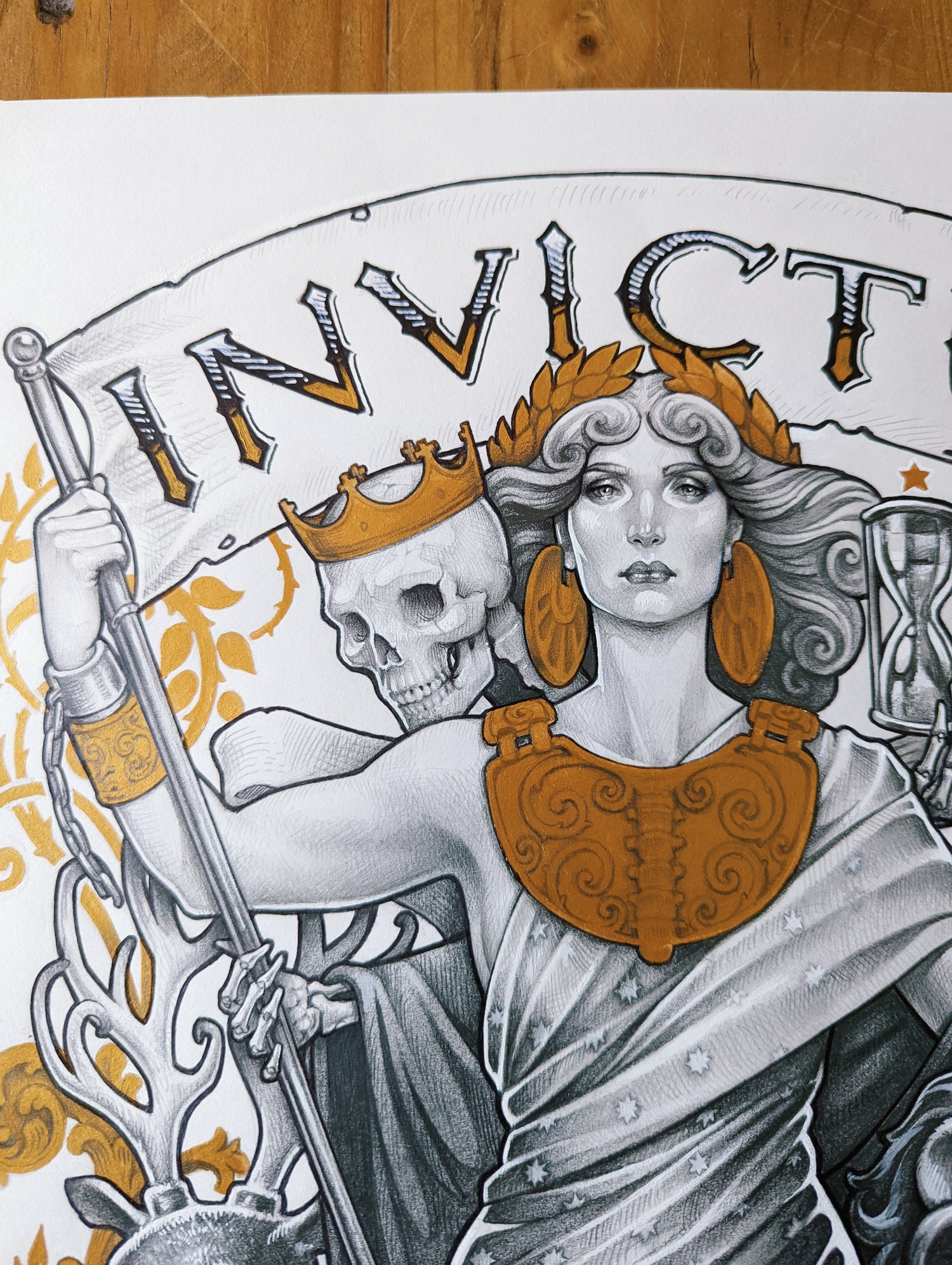 INVICTUS ORIGINAL ART - PENCIL, INK and GOLDEN GOUACHE ILLUSTRATION DinA3