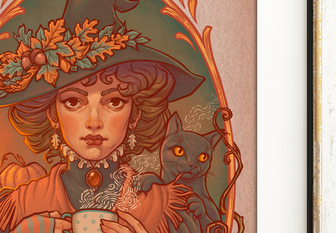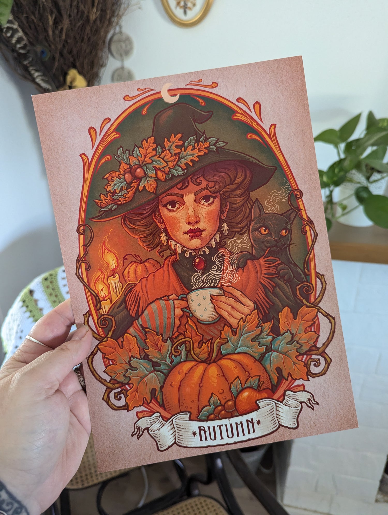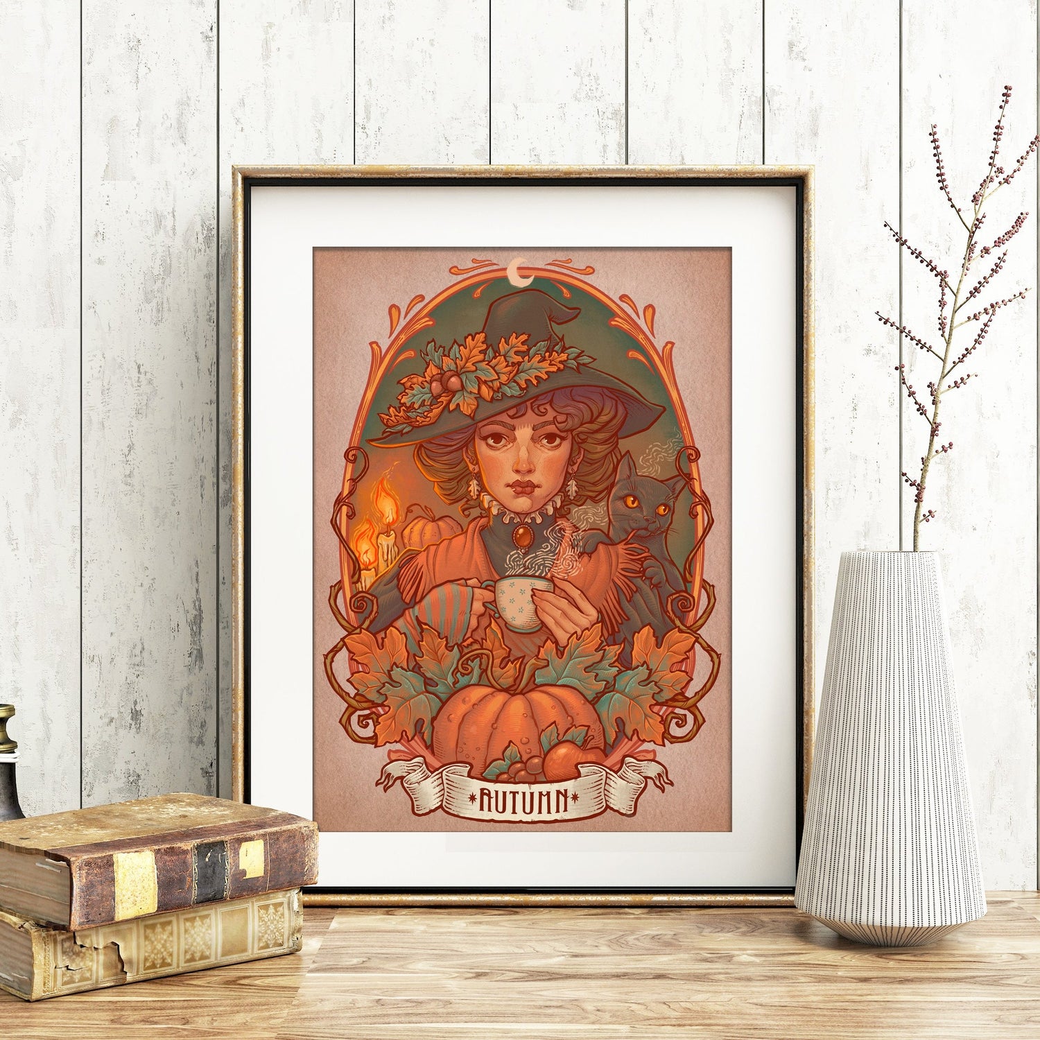 PRINT AUTUMN WITCH NOUVEAU DinA4 - 8x11'' - Art by Medusa Dollmaker