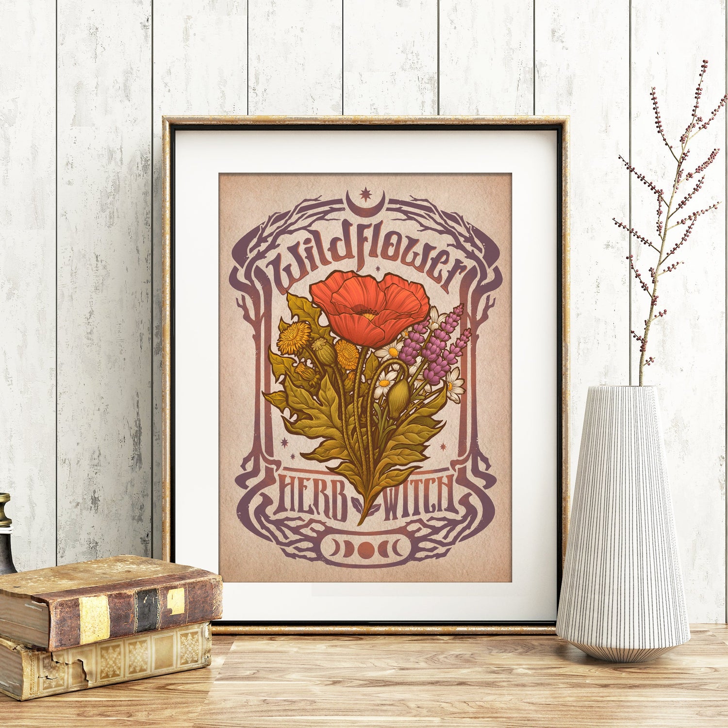 WILDFLOWERS SPRING OSTARA HERB WITCH ART PRINT DinA4 - 8x11'' - Art by Medusa Dollmaker Art Nouveau