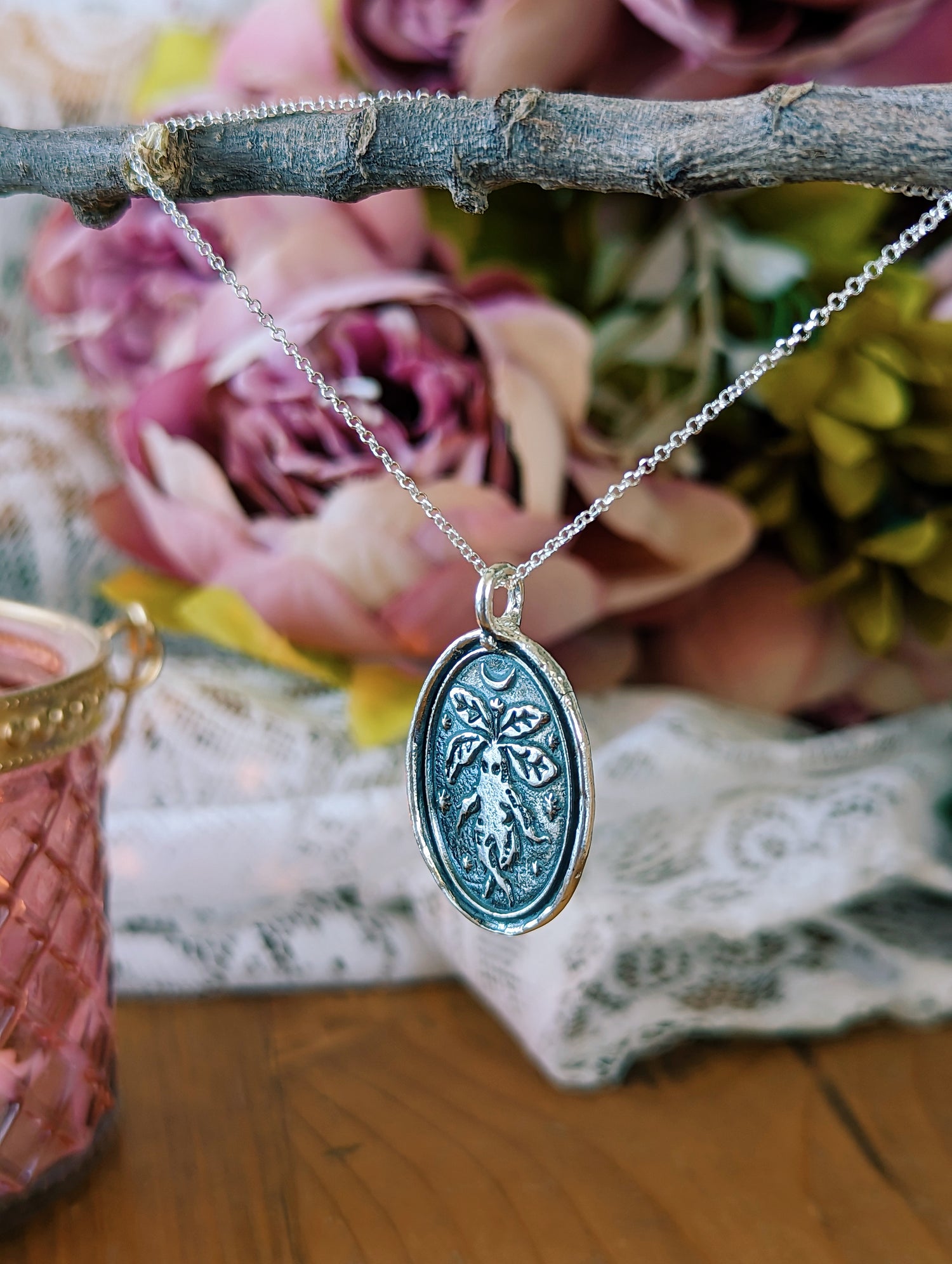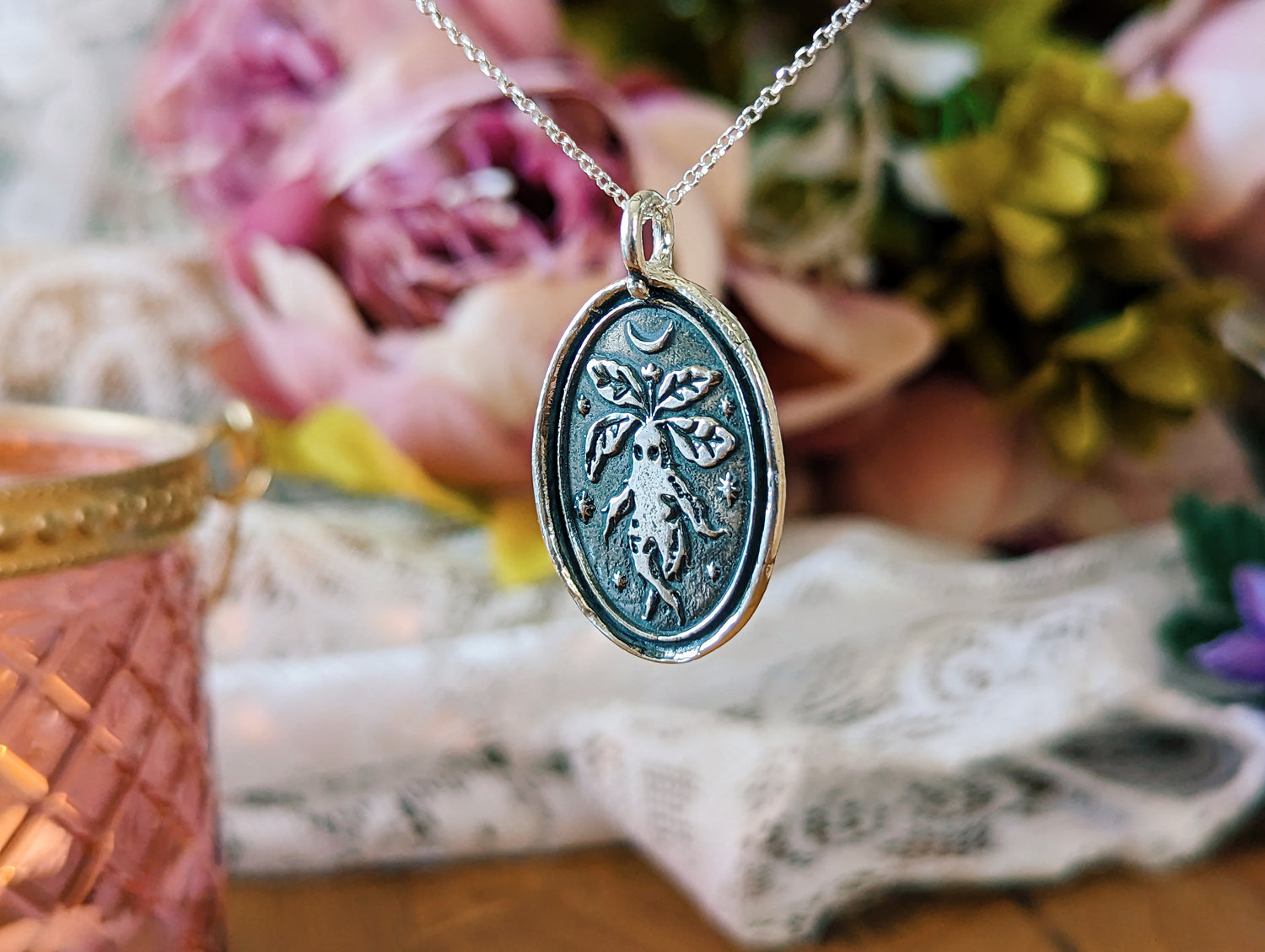 MANDRAKE TALISMAN NECKLACE - 925 STERLING SILVER WAX STAMP SEAL POISON PLANT WITCH