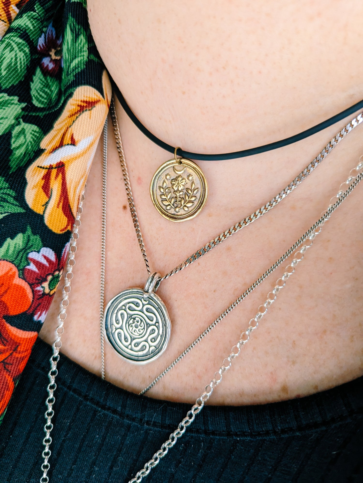 • HECATE WHEEL COIN PENDANT RUSTIC SILVER TALISMAN NECKLACE WAX STAMP
