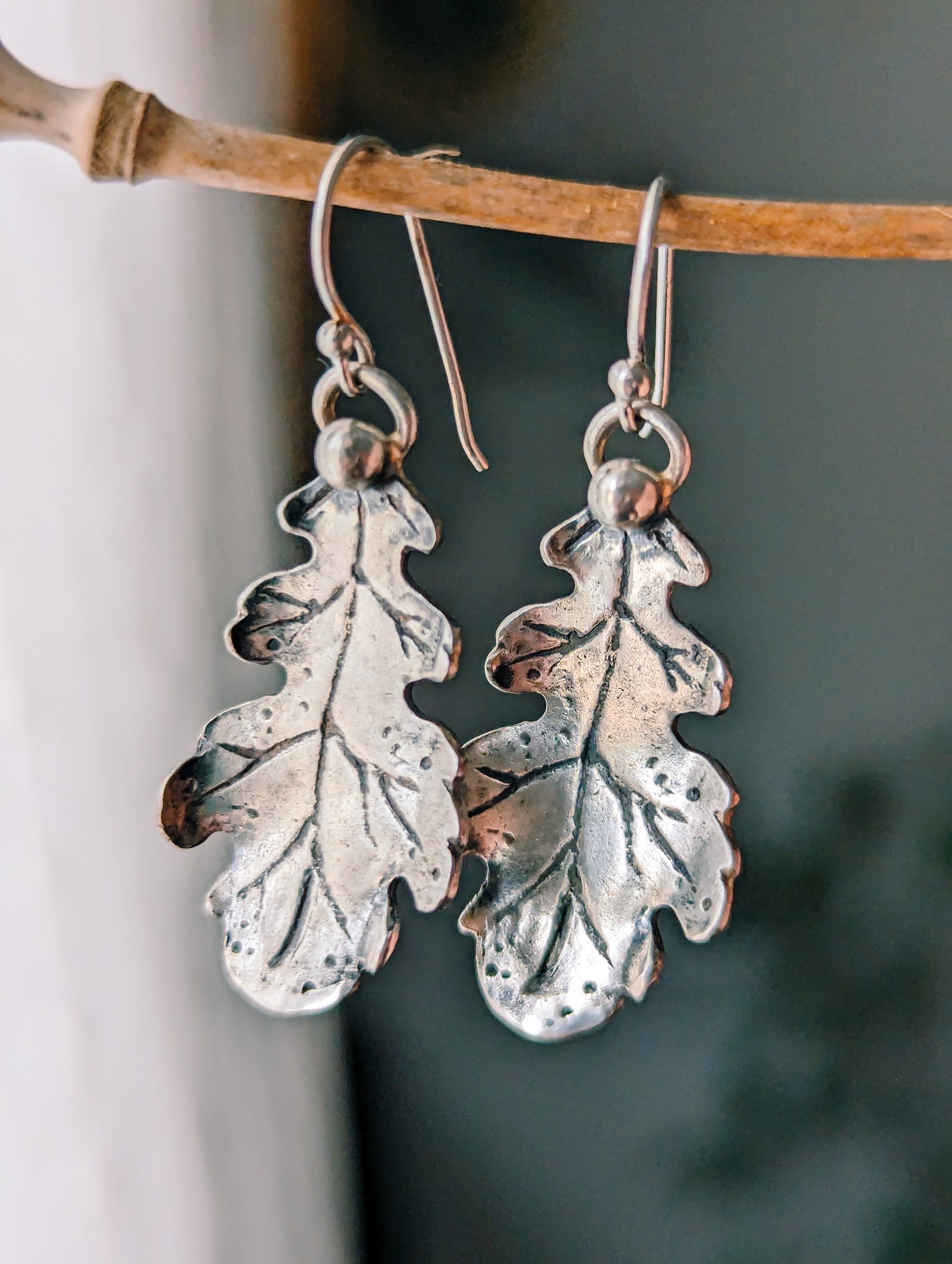 OAK LEAF EARRINGS 925 STERLING SILVER RUSTIC