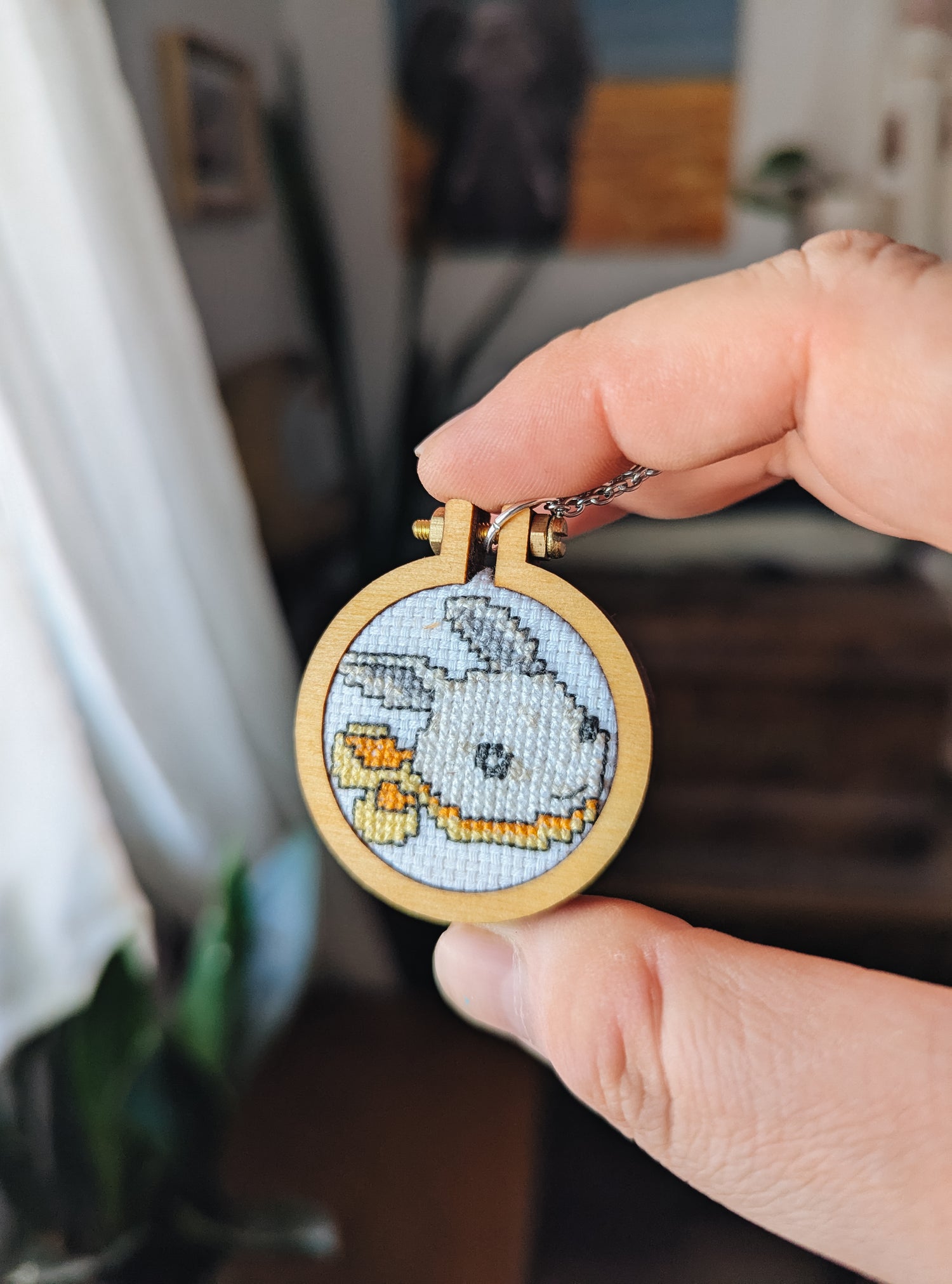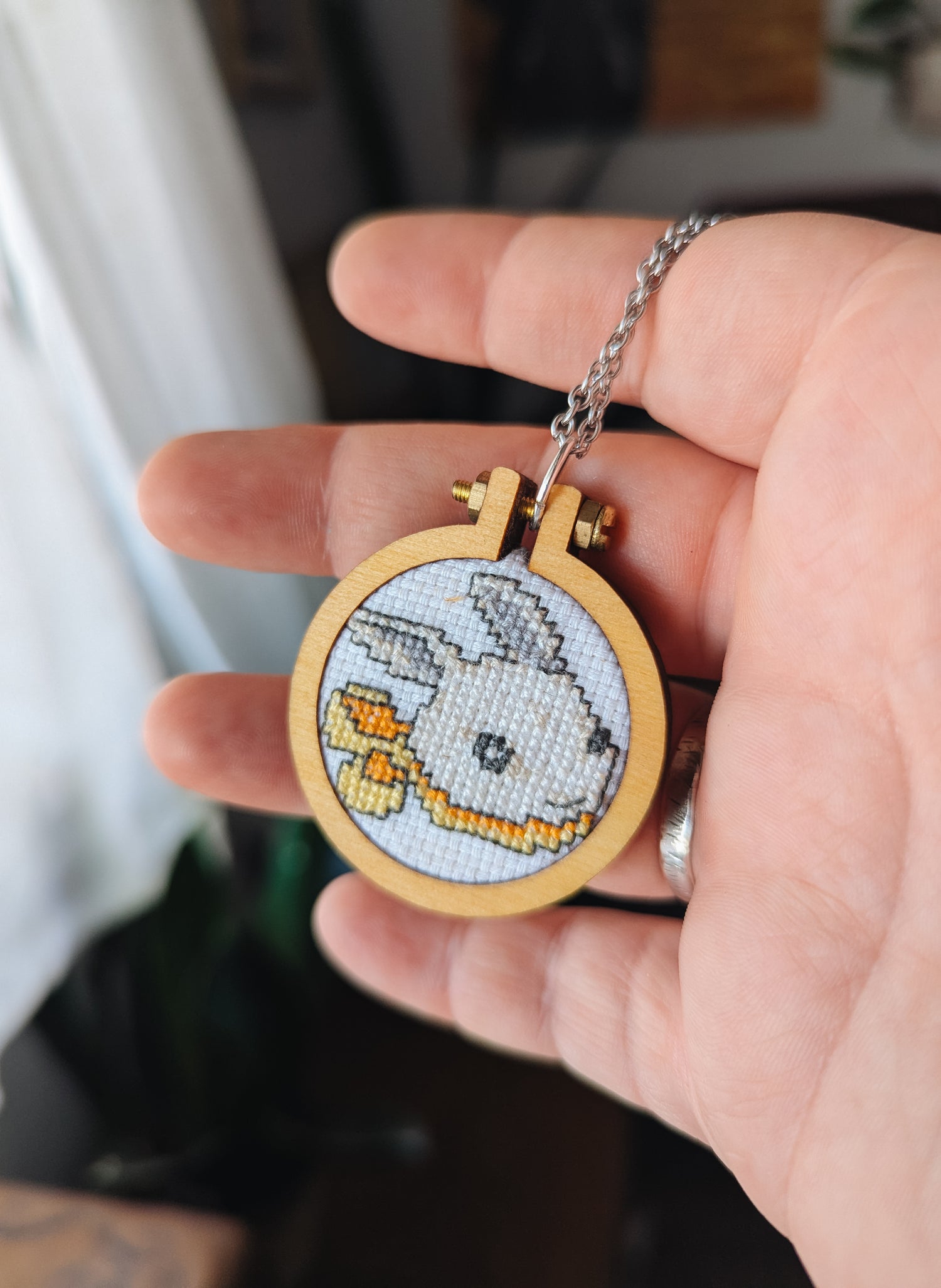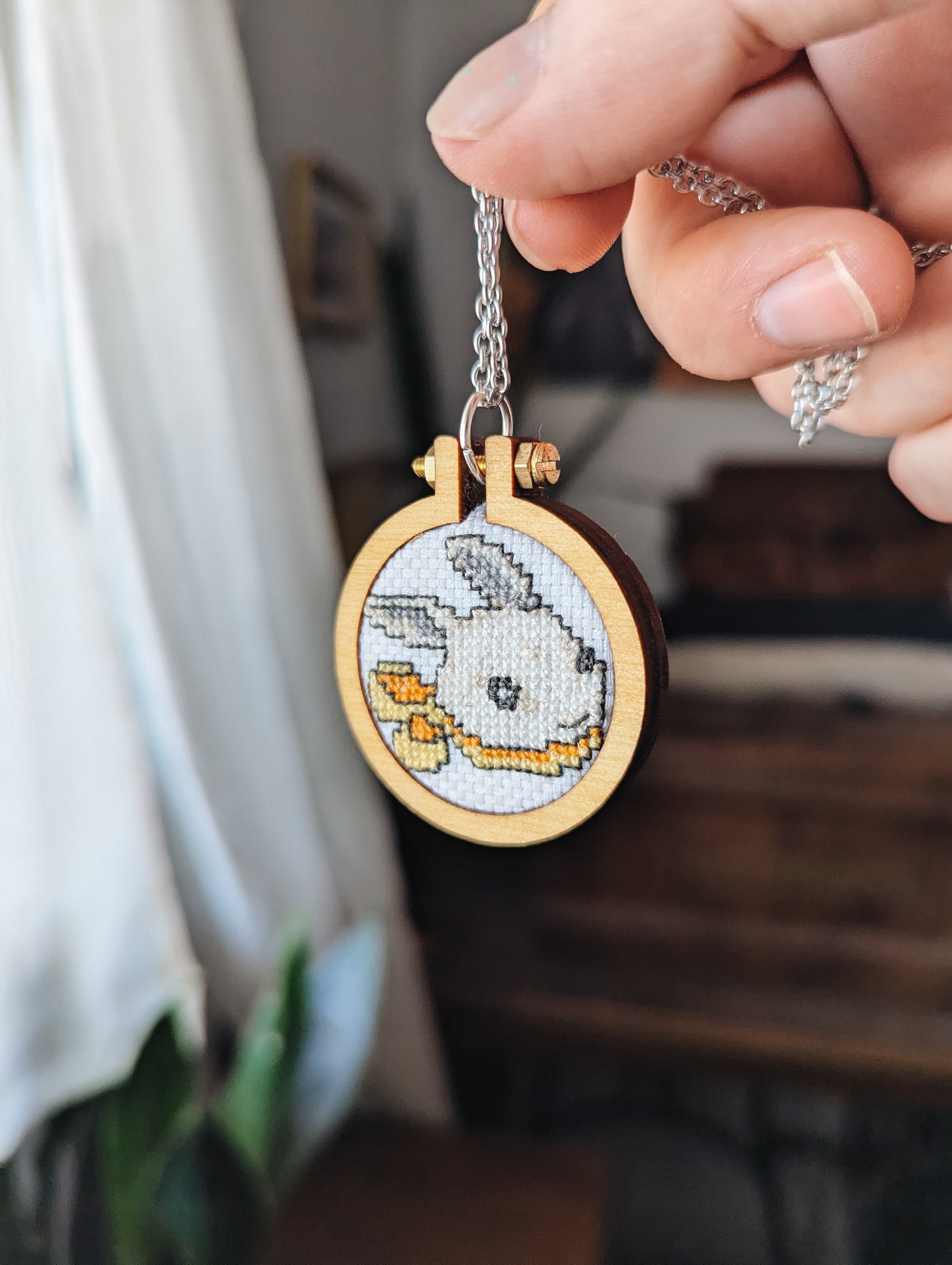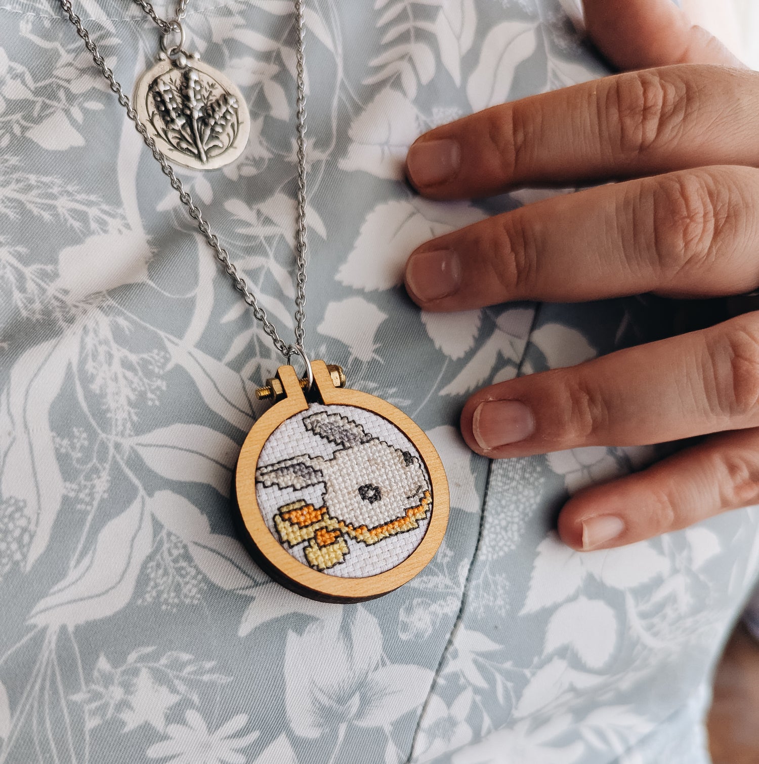 LITTLE RABBIT - WOODEN CROSS STITCH NECKLACE